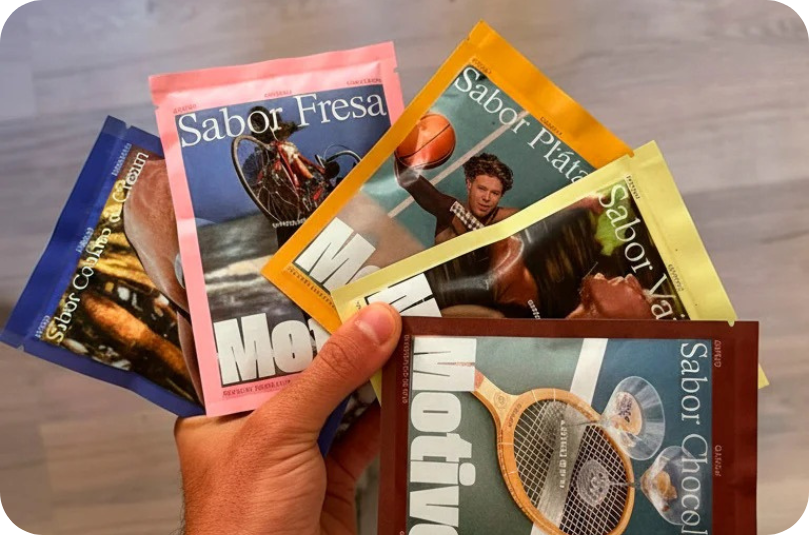 Motivo es diferente. Paquetes personalizados, sabores que eliges tú y monodosis que van contigo a donde sea.